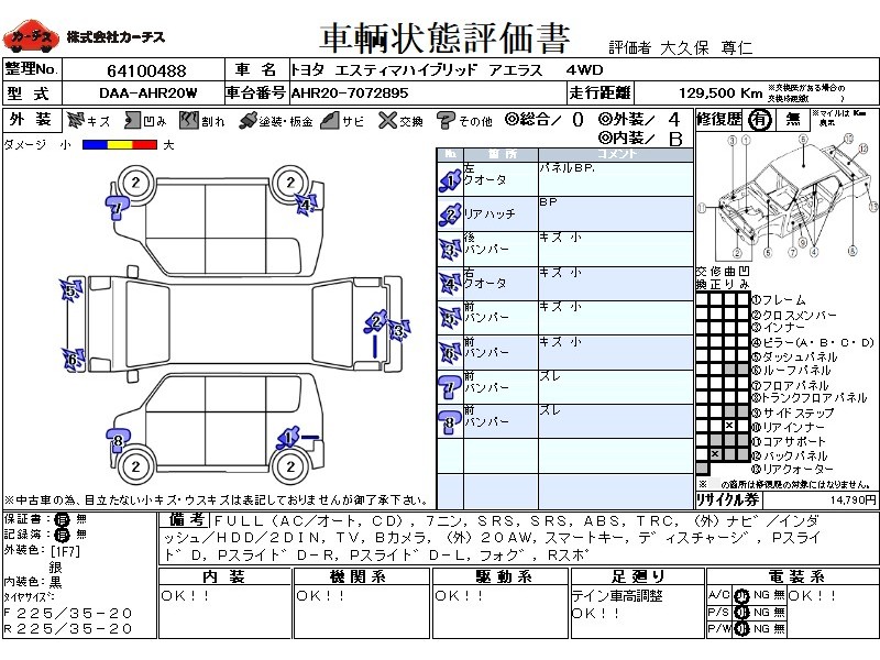 フル装備 / CD / 乗車定員(7人) / エアバッグ / 助手席エアバッグ / ABS / トラクションコントロール / カーナビゲーション(社外)(インダッシュ,HDD,2DIN) / テレビ(アナログ) / バックカメラ / ETC(社外) / アルミホイール(社外)(20インチ) / スマートキー / ディスチャージ / パワースライドドア / フォグランプ / リアスポイラー / 足回り /