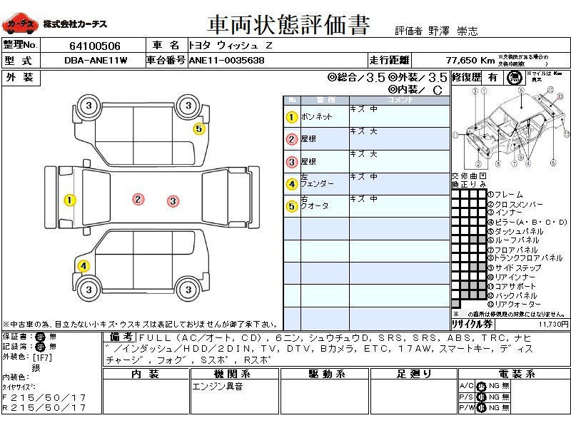 平成年登録トヨタウィッシュが入庫しました。