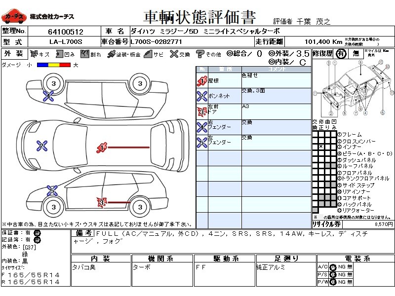 | 外装評価 | 3.5 |