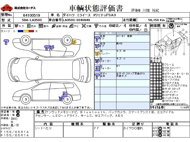 ケンウッドメモリーナビ!BLUETOOTH!バックカメラ!スマートアシストⅢ!エコアイドル!Pセンサー!LEDヘッドライト!キーレス!Wエアバッグ!ABS!