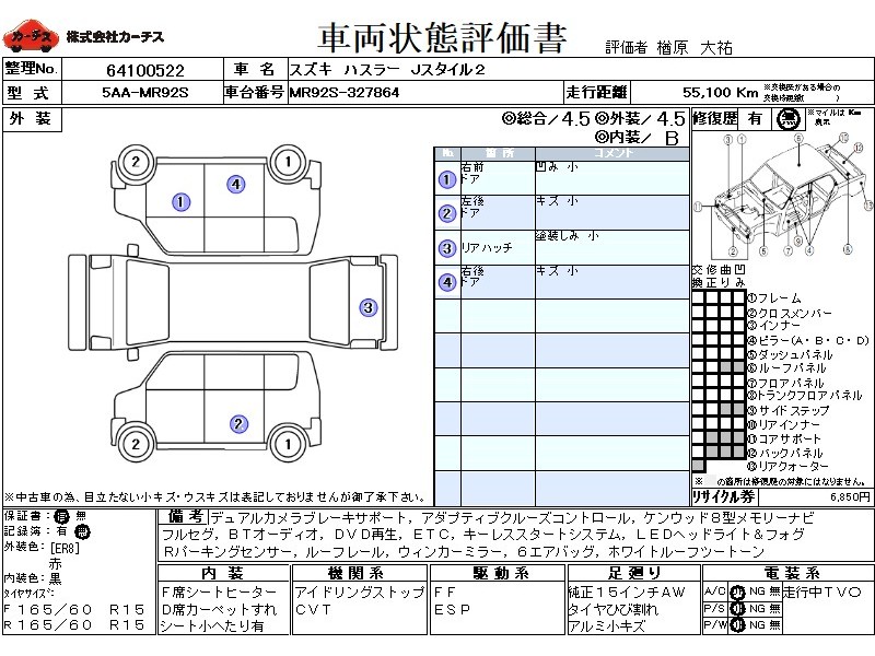 フル装備 / CD(社外) / エアバッグ / 助手席エアバッグ / サイドエアバッグ / ABS / トラクションコントロール / クルーズコントロール / カーナビゲーション(社外)(インダッシュ,2DIN) / 地デジTV(社外) / ETC(社外) / アルミホイール(15インチ) / スマートキー / ウインカーミラー / フォグランプ /