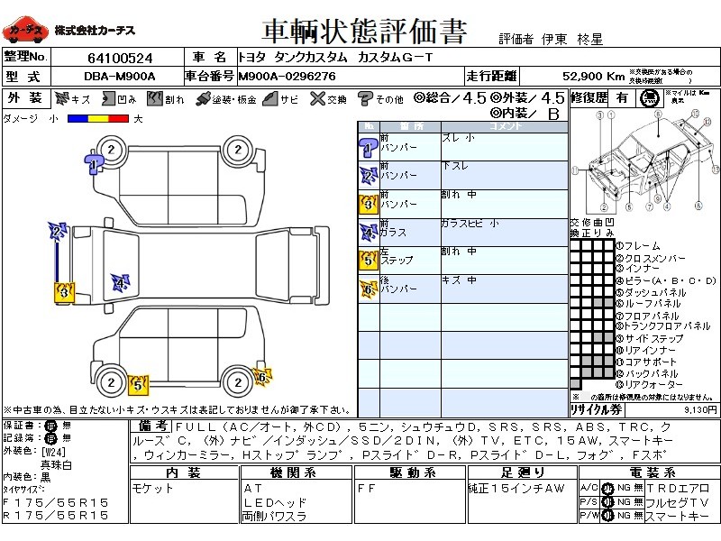 フル装備 / CD(社外) / 乗車定員(5人) / 集中ドアロック / エアバッグ / 助手席エアバッグ / ABS / トラクションコントロール / クルーズコントロール / カーナビゲーション(社外)(インダッシュ,SSD,2DIN) / テレビ(社外) / 地デジTV(社外) / ETC / アルミホイール(15インチ) / スマートキー / ウインカーミラー / ハイマウントストップランプ / パワースライドドア / フォグランプ / フロントスポイラー / サイドスポイラー / リアスポイラー / リアアンダースポイラー /