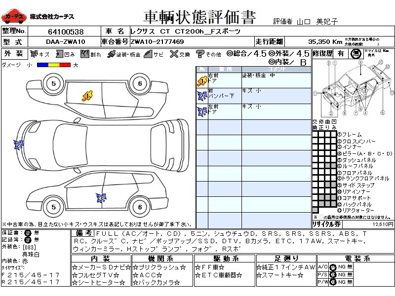 フル装備 / CD / 乗車定員(5人) / 集中ドアロック / エアバッグ / 助手席エアバッグ / サイドエアバッグ / ABS / トラクションコントロール / クルーズコントロール / カーナビゲーション(ポップアップ,SSD) / 地デジTV / バックカメラ / ETC / アルミホイール(17インチ) / スマートキー / ウインカーミラー / ハイマウントストップランプ / フォグランプ / リアスポイラー /