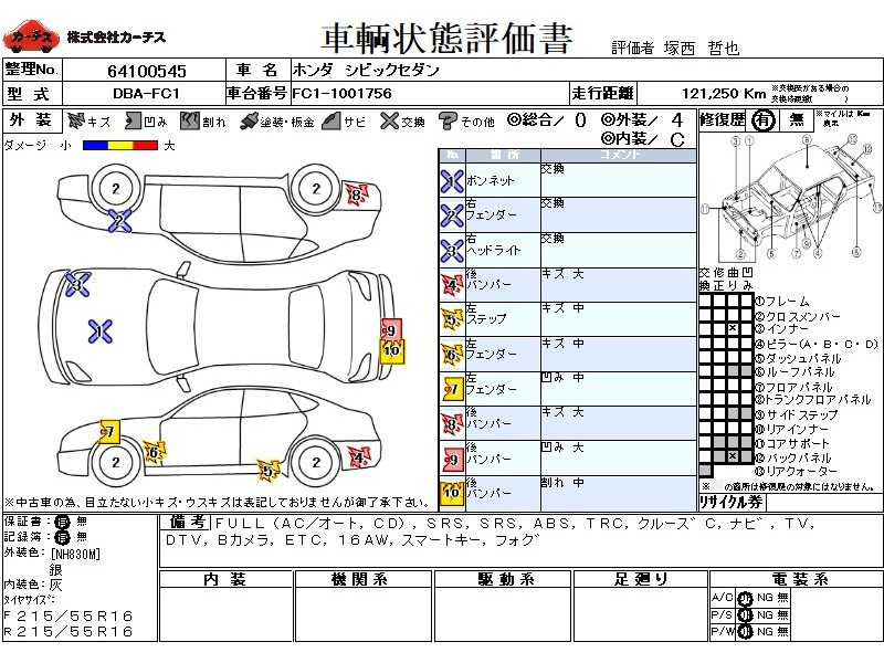 フル装備 / CD / エアバッグ / 助手席エアバッグ / ABS / トラクションコントロール / クルーズコントロール / カーナビゲーション / テレビ(アナログ) / 地デジTV / バックカメラ / ETC / アルミホイール(16インチ) / スマートキー / フォグランプ /