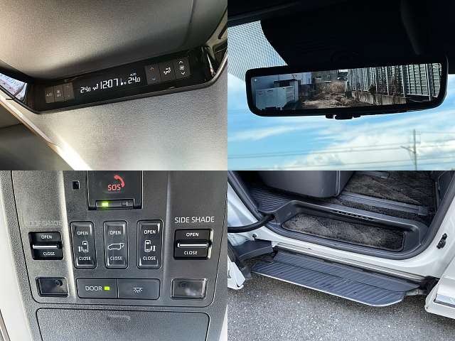 マルチ(ナビ) / エアコン(オート) / テレビ(アナログ) / 乗車定員(7人) / パワーステアリング / パワーウィンドウ / エアバッグ / 助手席エアバッグ / サイドエアバッグ / ABS / トラクションコントロール / クルーズコントロール / 地デジTV / バックカメラ / ETC / アルミホイール(18インチ) / サンルーフ / 革シート(黒) / スマートキー / パワースライドドア / パワーバックドア / フォグランプ / フロントスポイラー / サイドスポイラー / リアスポイラー / リアアンダースポイラー /