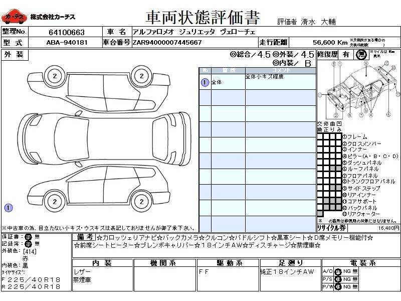 フル装備 / CD(社外) / 乗車定員(5人) / 集中ドアロック / エアバッグ / 助手席エアバッグ / サイドエアバッグ / ABS / トラクションコントロール / クルーズコントロール / カーナビゲーション(社外)(インダッシュ,SSD,2DIN) / テレビ(社外) / 地デジTV(社外) / ETC(社外) / アルミホイール(18インチ) / 革シート(黒) / キーレスエントリー / ディスチャージ / ハイマウントストップランプ / フォグランプ / サイドスポイラー / リアスポイラー /