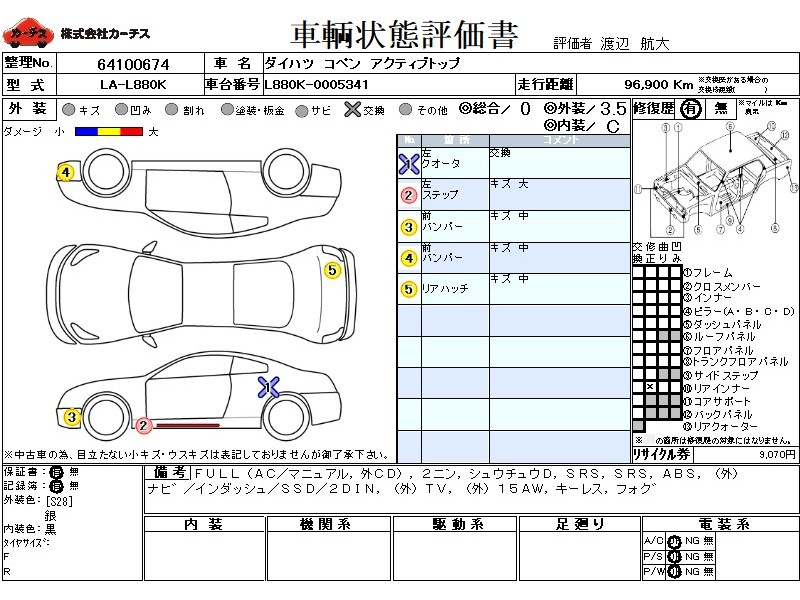 | 外装評価 | 3.5 |