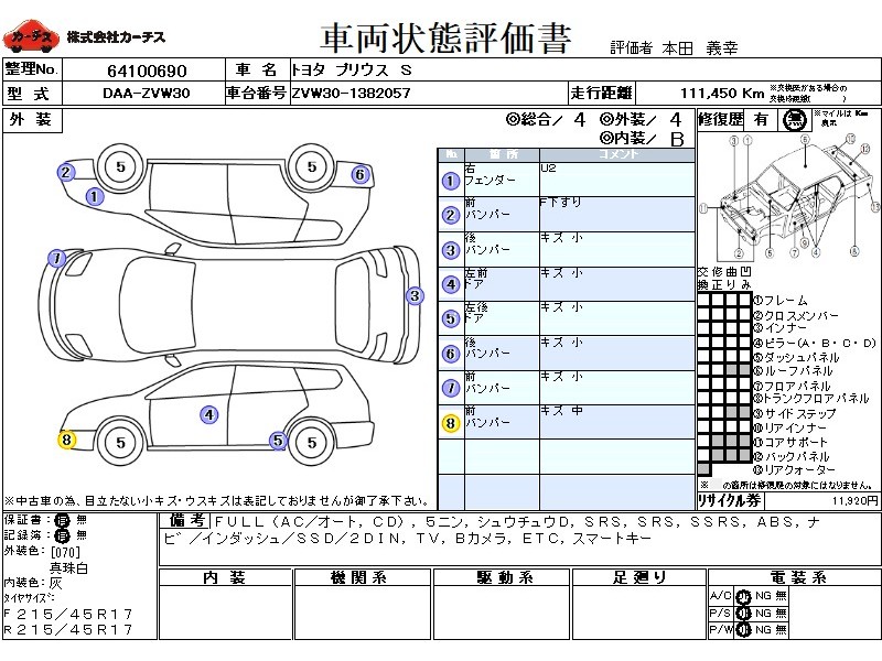 フル装備 / CD / 乗車定員(5人) / 集中ドアロック / エアバッグ / 助手席エアバッグ / サイドエアバッグ / ABS / カーナビゲーション(インダッシュ,SSD,2DIN) / テレビ(アナログ) / バックカメラ / ETC / アルミホイール(17インチ) / スマートキー / ウインカーミラー / ハイマウントストップランプ / フォグランプ / リアスポイラー /