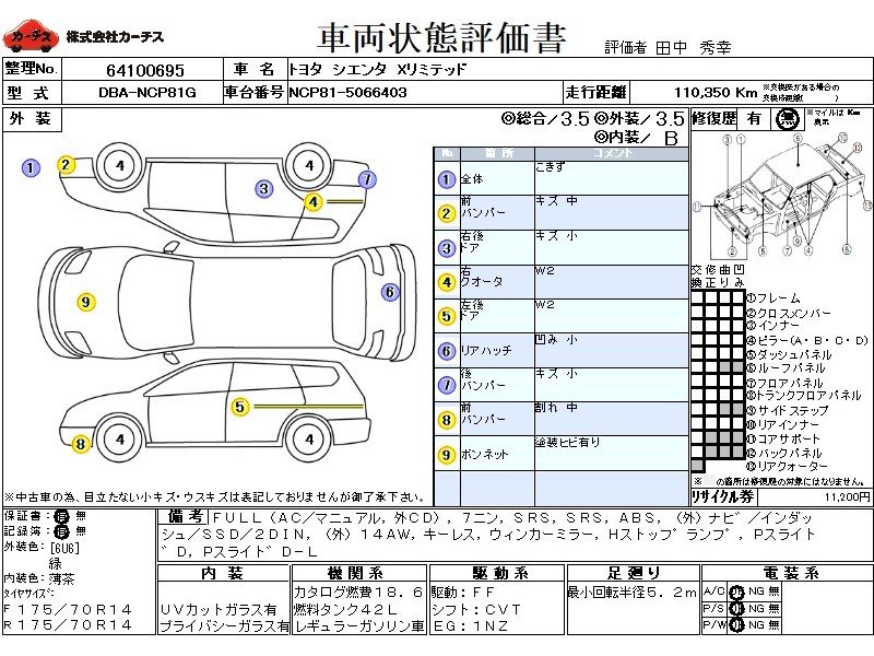 | 外装評価 | 3.5 |