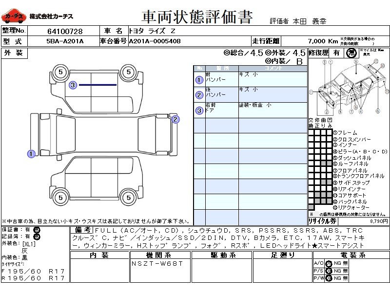 フル装備 / CD / 集中ドアロック / エアバッグ / 助手席エアバッグ / サイドエアバッグ / ABS / トラクションコントロール / クルーズコントロール / カーナビゲーション(インダッシュ,SSD,2DIN) / 地デジTV / バックカメラ / ETC / アルミホイール(17インチ) / スマートキー / ウインカーミラー / ハイマウントストップランプ / フォグランプ / リアスポイラー /