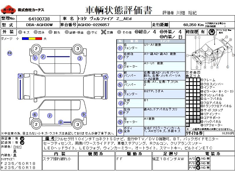 フル装備 / CD / 乗車定員(7人) / エアバッグ / 助手席エアバッグ / サイドエアバッグ / ABS / クルーズコントロール / カーナビゲーション(SSD) / テレビ(アナログ) / 地デジTV / フリップダウンモニタ / バックカメラ / ETC / アルミホイール(18インチ) / スマートキー / ウインカーミラー / ハイマウントストップランプ / パワースライドドア / フォグランプ / リアスポイラー /