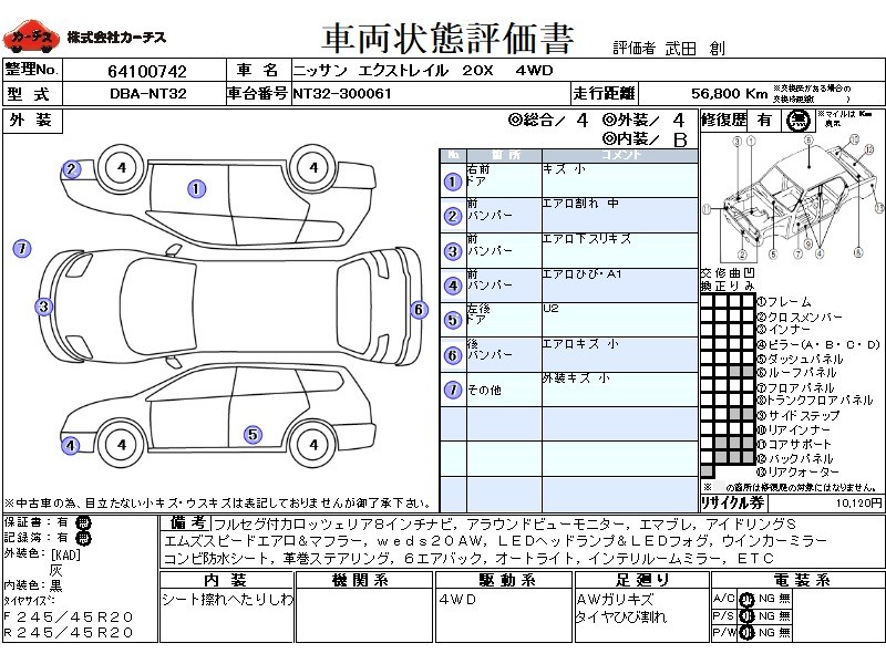 フル装備 / CD(社外) / 乗車定員(5人) / エアバッグ / 助手席エアバッグ / サイドエアバッグ / ABS / トラクションコントロール / カーナビゲーション(社外)(SSD) / テレビ(社外) / 地デジTV(社外) / ETC / アルミホイール(社外)(20インチ) / スマートキー / ウインカーミラー / ハイマウントストップランプ / フォグランプ / フロントスポイラー(社外) / サイドスポイラー(社外) / リアスポイラー / リアアンダースポイラー(社外) / マフラー(社外) /