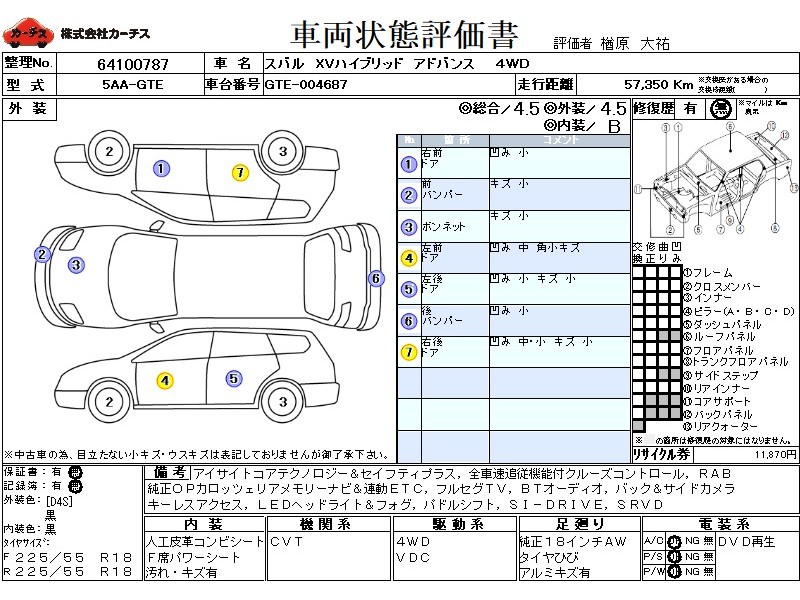 アイサイトコアテクノロジー&セイフティプラス 全車速追従機能付クルーズコントロール RAB SRVD 純正OPカロッツェリアメモリーナビ&連動ETC フルセグTV BTオーディオ DVD再生 バック&サイドカメラ キーレスアクセス LEDヘッドライト&LEDフォグ 人工皮革コンビシート F席パワーシート SI-DRIVE パドルシフト X-MODE コーナーセンサー 禁煙車