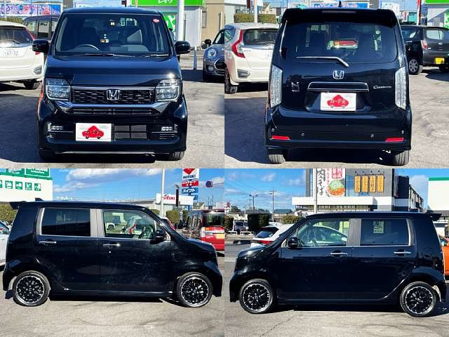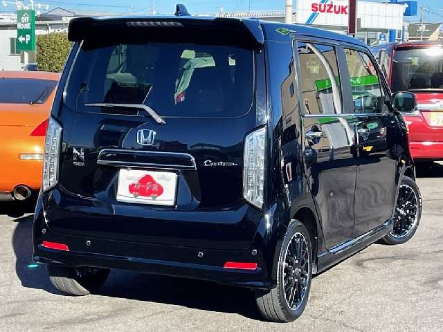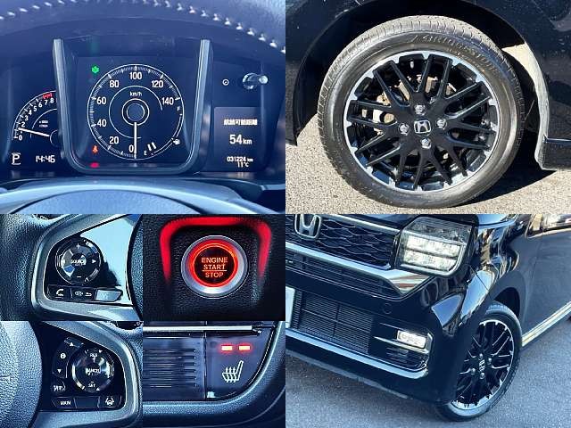 ホンダの人気軽自動車、N−WGNカスタムです。こちらはワンオーナー車で迫力あるブラック色、走りの余裕を約束するターボエンジンです。