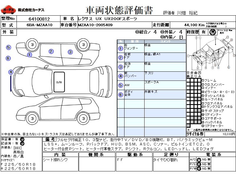 フル装備 / CD / 乗車定員(5人) / エアバッグ / 助手席エアバッグ / サイドエアバッグ / ABS / クルーズコントロール / カーナビゲーション(SSD) / テレビ(アナログ) / 地デジTV / バックカメラ(フロント) / ETC / アルミホイール(18インチ) / サンルーフ / スマートキー / ウインカーミラー / ハイマウントストップランプ / パワーバックドア / フォグランプ / リアスポイラー /