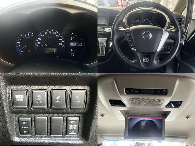 フル装備 / CD / 乗車定員(7人) / 集中ドアロック / エアバッグ / 助手席エアバッグ / ABS / トラクションコントロール / クルーズコントロール / カーナビゲーション(インダッシュ,HDD,2DIN) / テレビ(アナログ) / 地デジTV / フリップダウンモニタ / バックカメラ / ETC / アルミホイール(18インチ) / 革シート(黒) / スマートキー / ウインカーミラー / ハイマウントストップランプ / パワースライドドア / フォグランプ / フロントスポイラー / サイドスポイラー / リアアンダースポイラー /
