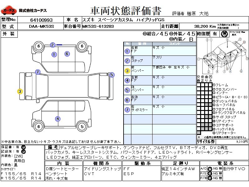 フル装備 / CD(社外) / エアバッグ / 助手席エアバッグ / サイドエアバッグ / ABS / トラクションコントロール / カーナビゲーション(社外)(インダッシュ,2DIN) / 地デジTV(社外) / ETC(社外) / アルミホイール(14インチ) / スマートキー / ウインカーミラー / パワースライドドア / フォグランプ / サイドスポイラー / リアスポイラー /