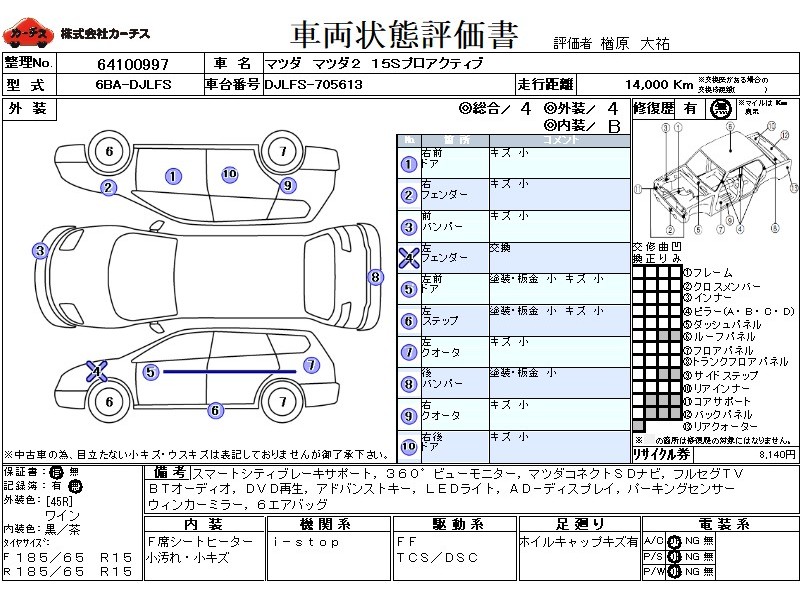 スマートシティブレーキサポート 360°ビューモニター BSM マツダコネクトSDナビ フルセグTV BTオーディオ DVD再生 アドバンストキー LEDヘッドライト F席シートヒーター AD-ディスプレイ ETC ウィンカーミラー 6エアバッグ I-STOP 禁煙車