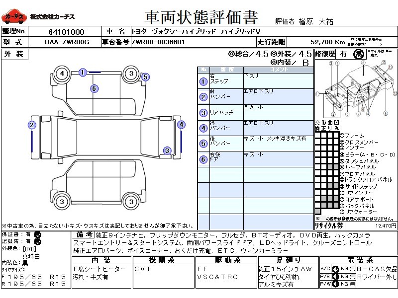 フル装備 / CD / 乗車定員(7人) / エアバッグ / 助手席エアバッグ / ABS / トラクションコントロール / クルーズコントロール / カーナビゲーション(インダッシュ,2DIN) / 地デジTV / フリップダウンモニタ / バックカメラ / ETC / アルミホイール(15インチ) / スマートキー / ウインカーミラー / パワースライドドア / フォグランプ / フロントスポイラー / リアスポイラー / リアアンダースポイラー /