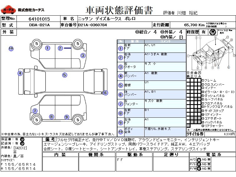 フル装備 / CD / 乗車定員(4人) / エアバッグ / 助手席エアバッグ / サイドエアバッグ / ABS / カーナビゲーション(SSD) / テレビ(アナログ) / 地デジTV / バックカメラ(フロント) / アルミホイール(14インチ) / スマートキー / ハイマウントストップランプ / パワースライドドア /
