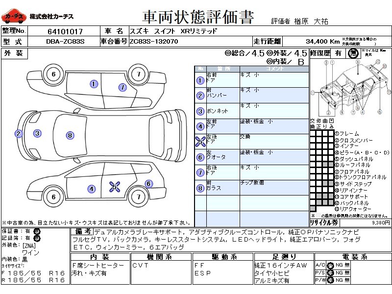 フル装備 / CD / エアバッグ / 助手席エアバッグ / サイドエアバッグ / ABS / トラクションコントロール / クルーズコントロール / カーナビゲーション(インダッシュ,2DIN) / 地デジTV / バックカメラ / ETC / アルミホイール(16インチ) / スマートキー / ウインカーミラー / フォグランプ / サイドスポイラー / リアスポイラー /