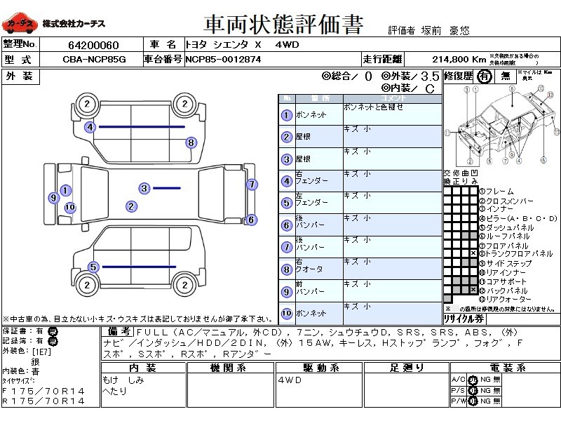 フル装備 / CD(社外) / 乗車定員(7人) / 集中ドアロック / エアバッグ / 助手席エアバッグ / ABS / カーナビゲーション(社外)(インダッシュ,HDD,2DIN) / アルミホイール(社外)(15インチ) / キーレスエントリー / ハイマウントストップランプ / フォグランプ / フロントスポイラー / サイドスポイラー / リアスポイラー / リアアンダースポイラー /