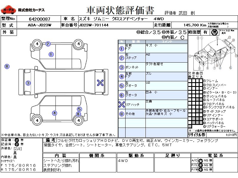 フル装備 / CD(社外) / 乗車定員(4人) / エアバッグ / 助手席エアバッグ / ABS / カーナビゲーション(社外)(HDD) / テレビ(社外) / 地デジTV(社外) / ETC(社外) / アルミホイール(16インチ) / キーレスエントリー / ウインカーミラー / ハイマウントストップランプ / 背面タイヤ / フォグランプ /