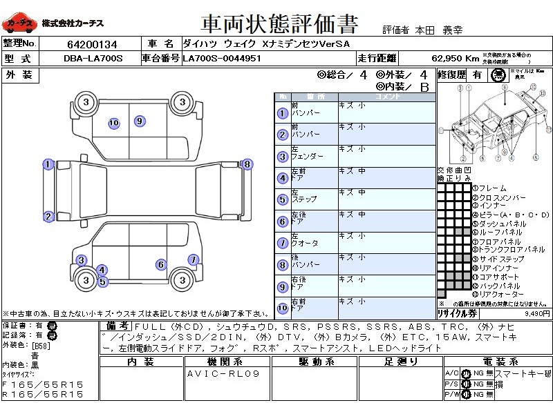 フル装備 / CD(社外) / 集中ドアロック / エアバッグ / 助手席エアバッグ / サイドエアバッグ / ABS / トラクションコントロール / カーナビゲーション(社外)(インダッシュ,SSD,2DIN) / 地デジTV(社外) / ETC(社外) / アルミホイール(15インチ) / スマートキー / ハイマウントストップランプ / パワースライドドア / フォグランプ / リアスポイラー /