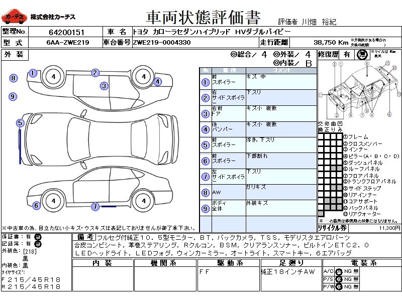 乗車定員(5人) / エアコン(オート) / パワーステアリング / パワーウィンドウ / エアバッグ / 助手席エアバッグ / サイドエアバッグ / ABS / クルーズコントロール / テレビ(アナログ) / 地デジTV / バックカメラ / ETC / アルミホイール(18インチ) / スマートキー / ウインカーミラー / ハイマウントストップランプ / フォグランプ / フロントスポイラー / サイドスポイラー / リアスポイラー /