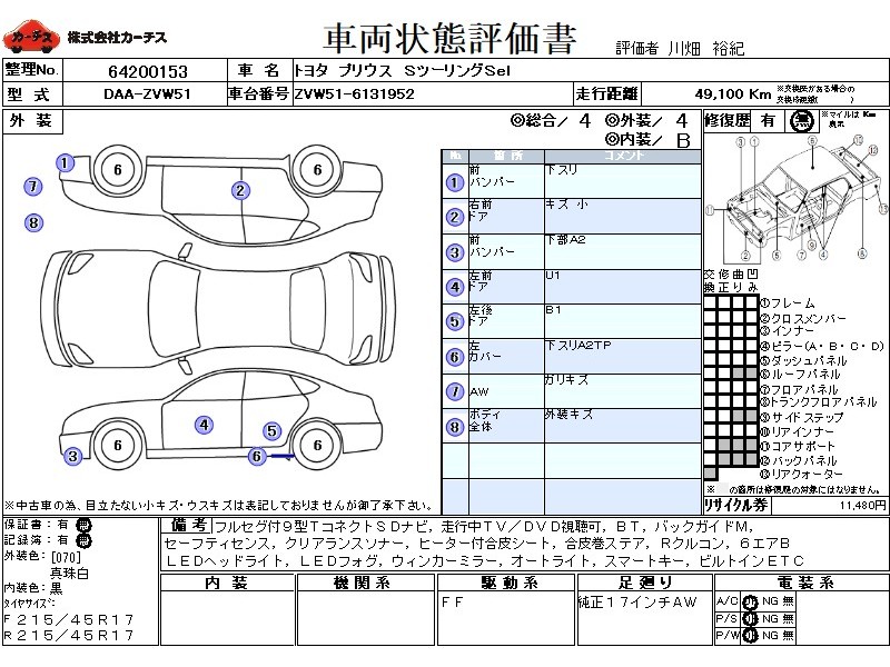 フル装備 / CD / 乗車定員(5人) / エアバッグ / 助手席エアバッグ / サイドエアバッグ / ABS / クルーズコントロール / カーナビゲーション(SSD) / テレビ(アナログ) / 地デジTV / バックカメラ / ETC / アルミホイール(17インチ) / スマートキー / ウインカーミラー / ハイマウントストップランプ / フォグランプ /