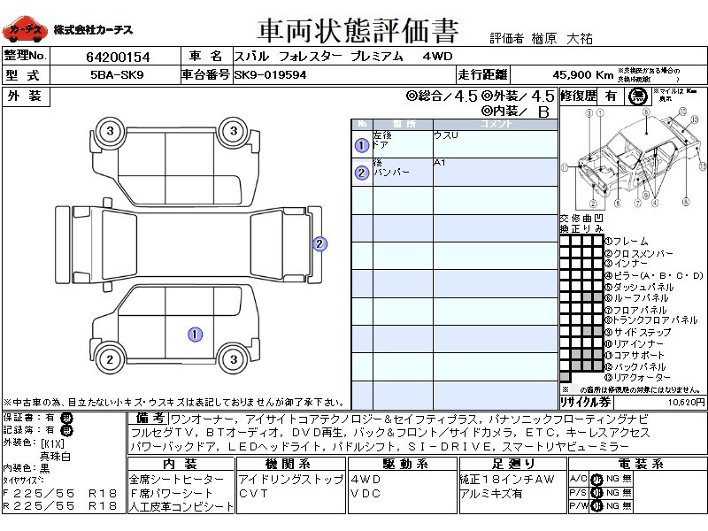 ワンオーナー アイサイトコアテクノロジー&セイフティプラス 全車速追従機能付クルーズコントロール パナソニック9インチフローティングナビ フルセグTV BTオーディオ DVD再生 バック&フロント/サイドカメラ キーレスアクセス パワーバックドア LEDヘッドライト&フォグ パドルシフト SI-DRIVE 全席シートヒーター スマートリヤビューミラー 禁煙車