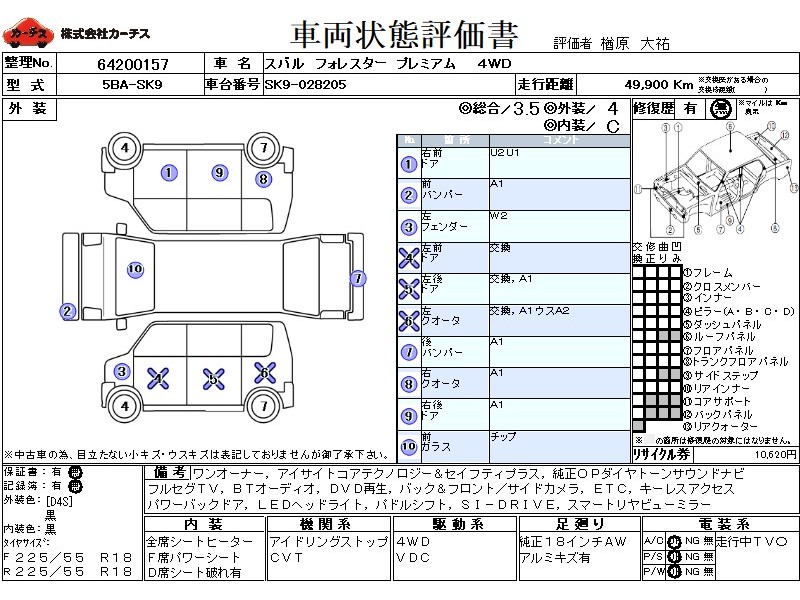 ワンオーナー アイサイトコアテクノロジー&セイフティプラス 全車速追従機能付クルーズコントロール 純正OPダイヤトーンサウンドナビ フルセグTV BTオーディオ DVD再生 バック&フロント/サイドカメラ キーレスアクセス パワーバックドア LEDヘッドライト&フォグ パドルシフト SI-DRIVE 全席シートヒーター スマートリヤビューミラー 禁煙車