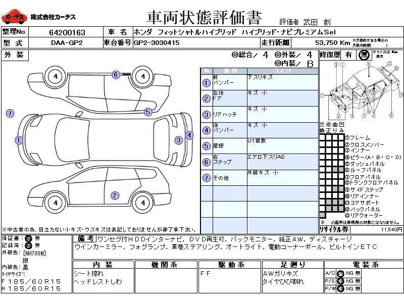 フル装備 / CD / 乗車定員(5人) / エアバッグ / 助手席エアバッグ / ABS / トラクションコントロール / クルーズコントロール / カーナビゲーション(HDD) / テレビ(アナログ) / 地デジTV / バックカメラ / ETC / アルミホイール(15インチ) / スマートキー / ディスチャージ / ウインカーミラー / ハイマウントストップランプ / フォグランプ / サイドスポイラー /