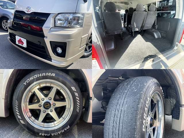 フル装備 / CD(社外) / 乗車定員(10人) / 集中ドアロック / エアバッグ / 助手席エアバッグ / ABS / トラクションコントロール / カーナビゲーション(社外)(インダッシュ,SSD,2DIN) / テレビ(社外) / 地デジTV(社外) / ETC(社外) / アルミホイール(社外)(17インチ) / スマートキー / ハイマウントストップランプ / パワースライドドア / フォグランプ(社外) / サイドスポイラー(社外) / リアスポイラー(社外) /