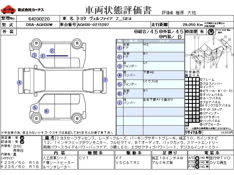 フル装備 / CD / 乗車定員(7人) / エアバッグ / 助手席エアバッグ / サイドエアバッグ / ABS / トラクションコントロール / クルーズコントロール / カーナビゲーション(インダッシュ,2DIN) / 地デジTV / フリップダウンモニタ / バックカメラ / ETC / アルミホイール(18インチ) / スマートキー / ウインカーミラー / パワースライドドア / パワーバックドア / フォグランプ / リアスポイラー /
