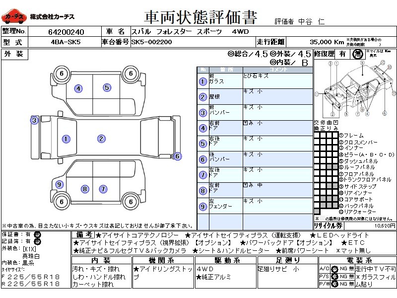 フル装備 / CD / 乗車定員(5人) / 集中ドアロック / エアバッグ / 助手席エアバッグ / サイドエアバッグ / ABS / トラクションコントロール / クルーズコントロール / カーナビゲーション(インダッシュ,SSD,2DIN) / 地デジTV / バックカメラ(フロント) / ETC / アルミホイール(18インチ) / ハーフレザーシート / スマートキー / ウインカーミラー / ハイマウントストップランプ / パワーバックドア / フォグランプ /