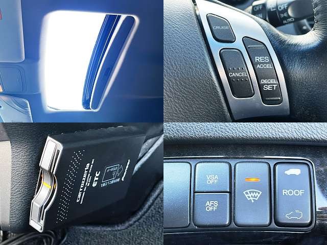 乗車定員(7人) / エアコン(オート) / パワーステアリング / パワーウィンドウ / 集中ドアロック / エアバッグ / 助手席エアバッグ / ABS / トラクションコントロール / クルーズコントロール / ETC(社外) / アルミホイール(17インチ) / サンルーフ / ハーフレザーシート / キーレスエントリー / ディスチャージ / ハイマウントストップランプ / フォグランプ / フロントスポイラー / サイドスポイラー / リアスポイラー /