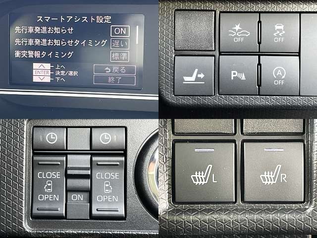 スマートアシスト パノラマモニター 純正メモリーナビ フルセグTV BTオーディオ DVD再生 キーフリーシステム 両側パワースライドドア LEDヘッドライト&LEDフォグ 純正14インチアルミ 純正エアロパーツ 人工皮革コンビシート F席シートヒーター コーナーセンサー ETC ウィンカーミラー 6エアバッグ エコアイドル 禁煙車