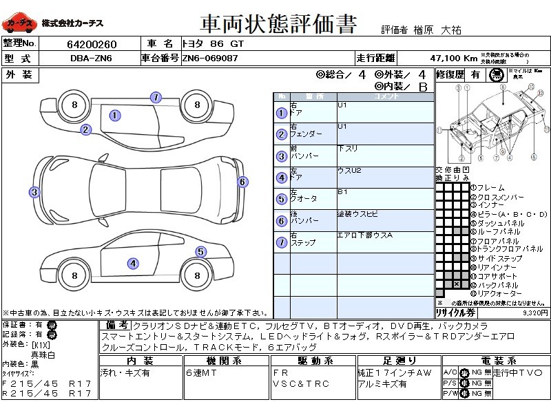 ワンオーナー 6速MT クラリオンSDナビ&連動ETC フルセグTV BTオーディオ DVD再生 バックカメラ スマートエントリー&スタートシステム LEDヘッドライト&LEDフォグ 純正17インチアルミ 大型Rスポイラー&TRDアンダーエアロ クルーズコントロール TRCKモード 6エアバッグ 禁煙車