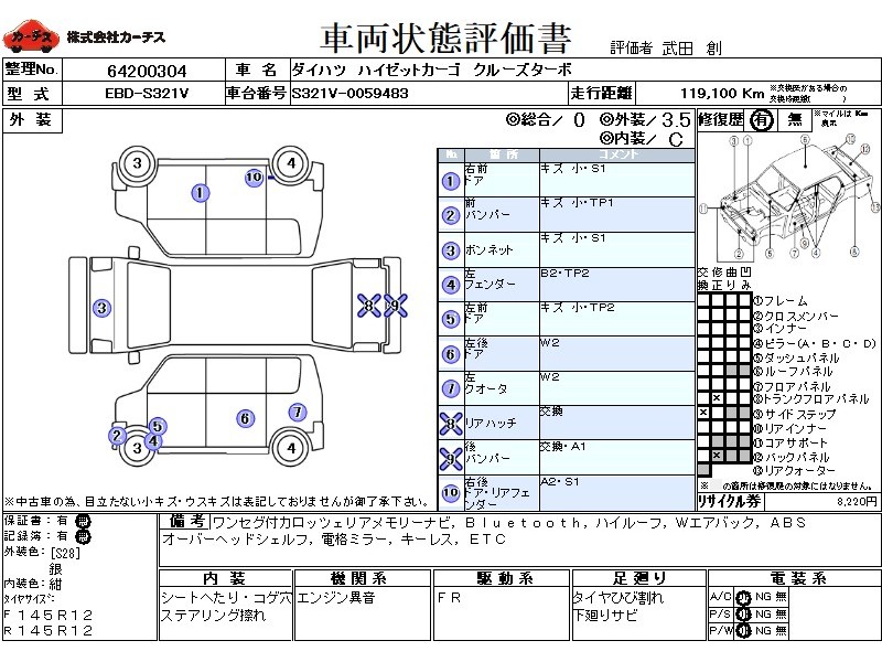 フル装備 / CD(社外) / 乗車定員(4人) / エアバッグ / 助手席エアバッグ / ABS / カーナビゲーション(社外)(SSD) / テレビ(社外) / 地デジTV(社外) / ETC(社外) / キーレスエントリー / ハイマウントストップランプ /
