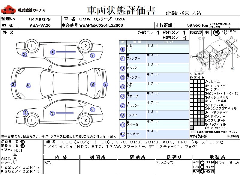 FULL(AC/オート,CD),SRS,PSSRS,SSRS,ABS,TRC,クルース゛C,ナヒ゛/インダッシュ/HDD,ETC,17AW,スマートキー,テ゛ィスチャーシ゛,フォク゛,(外)Rスホ゜