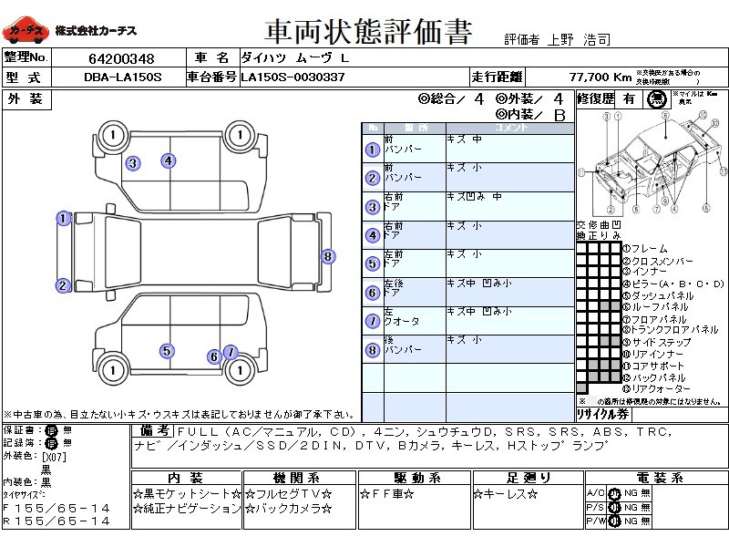 フル装備 / CD / 乗車定員(4人) / 集中ドアロック / エアバッグ / 助手席エアバッグ / ABS / トラクションコントロール / カーナビゲーション(インダッシュ,SSD,2DIN) / 地デジTV / バックカメラ / キーレスエントリー / ハイマウントストップランプ /