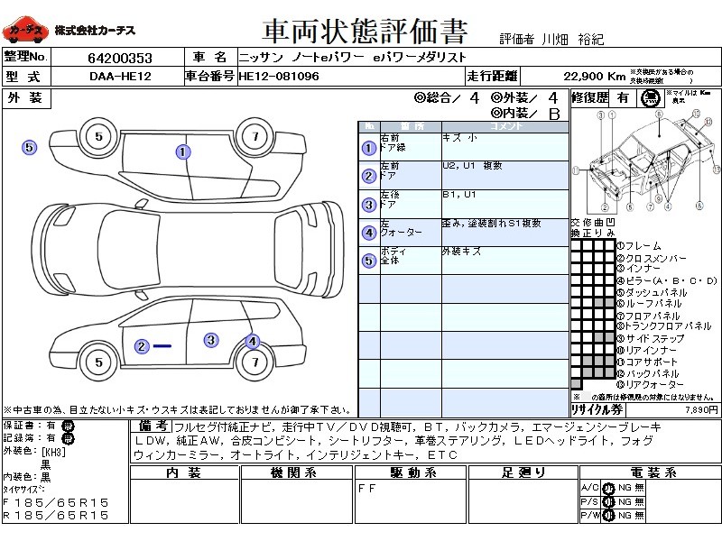 フル装備 / CD / 乗車定員(5人) / エアバッグ / 助手席エアバッグ / ABS / カーナビゲーション(SSD) / テレビ(アナログ) / 地デジTV / バックカメラ / ETC / アルミホイール(15インチ) / スマートキー / ウインカーミラー / ハイマウントストップランプ / フォグランプ /