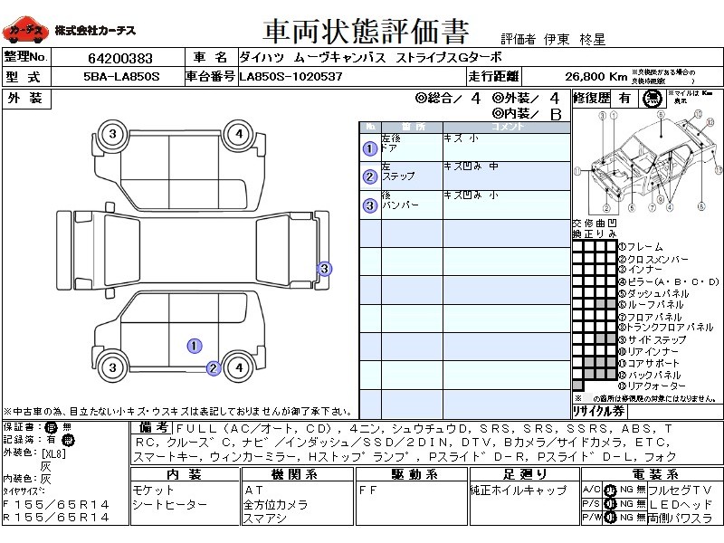 フル装備 / CD / 乗車定員(4人) / 集中ドアロック / エアバッグ / 助手席エアバッグ / サイドエアバッグ / ABS / トラクションコントロール / クルーズコントロール / カーナビゲーション(インダッシュ,SSD,2DIN) / 地デジTV / バックカメラ(サイドカメラ) / ETC / スマートキー / ウインカーミラー / ハイマウントストップランプ / パワースライドドア / フォグランプ /