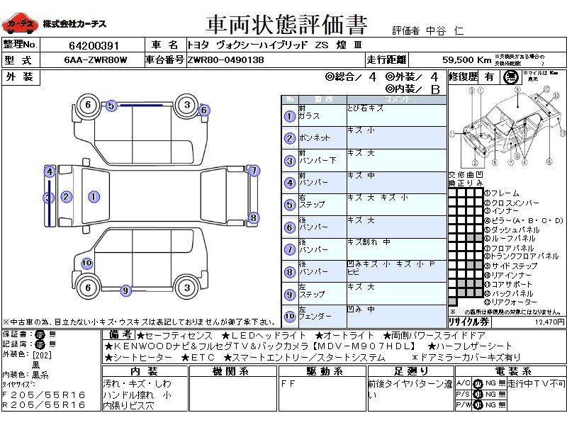 フル装備 / CD(社外) / 乗車定員(7人) / 集中ドアロック / エアバッグ / 助手席エアバッグ / ABS / トラクションコントロール / クルーズコントロール / カーナビゲーション(社外)(インダッシュ,SSD,2DIN) / 地デジTV(社外) / ETC(社外) / アルミホイール(16インチ) / ハーフレザーシート / スマートキー / ウインカーミラー / ハイマウントストップランプ / パワースライドドア / フォグランプ / リアスポイラー /