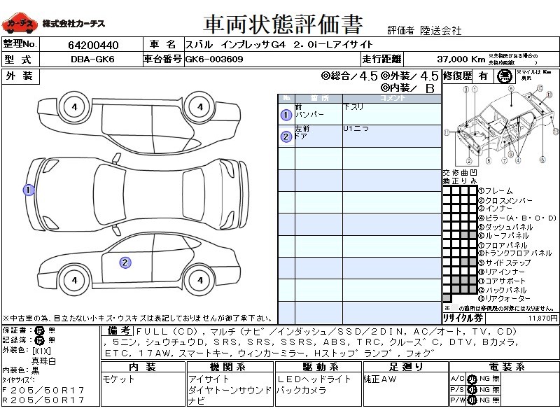 | 走行距離 | 3.7 万km |