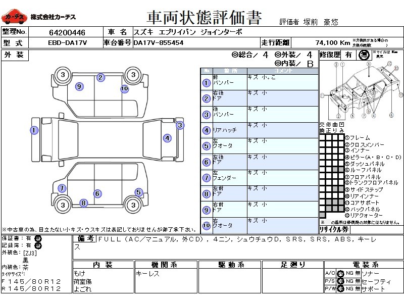 フル装備 / CD(社外) / 乗車定員(4人) / 集中ドアロック / エアバッグ / 助手席エアバッグ / ABS / キーレスエントリー /