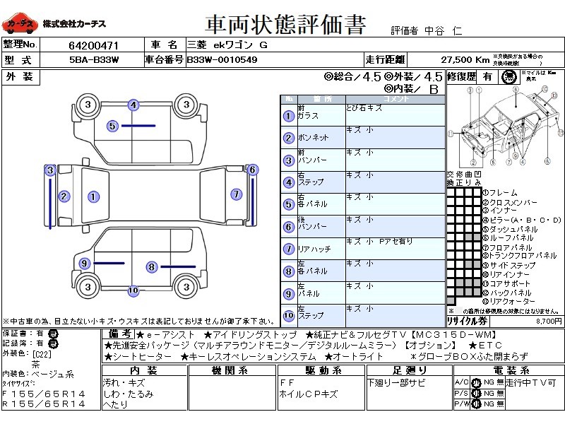 フル装備 / CD / 集中ドアロック / エアバッグ / 助手席エアバッグ / サイドエアバッグ / ABS / トラクションコントロール / カーナビゲーション(インダッシュ,SSD,2DIN) / 地デジTV / バックカメラ(フロント) / ETC(社外) / スマートキー / ハイマウントストップランプ /