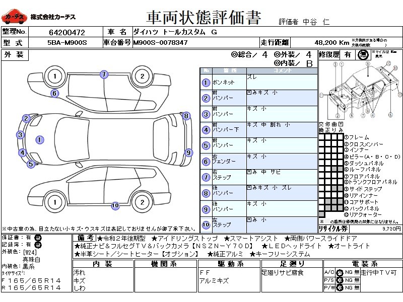フル装備 / CD / 集中ドアロック / エアバッグ / 助手席エアバッグ / ABS / トラクションコントロール / クルーズコントロール / カーナビゲーション(インダッシュ,SSD,2DIN) / 地デジTV / バックカメラ / アルミホイール(14インチ) / ハーフレザーシート / スマートキー / ウインカーミラー / ハイマウントストップランプ / パワースライドドア / フォグランプ /