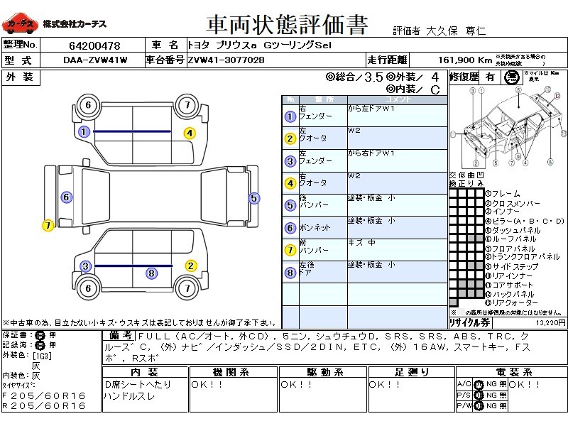 フル装備 / CD(社外) / 乗車定員(5人) / 集中ドアロック / エアバッグ / 助手席エアバッグ / ABS / トラクションコントロール / クルーズコントロール / カーナビゲーション(社外)(インダッシュ,SSD,2DIN) / 地デジTV(社外) / ETC / アルミホイール(社外)(16インチ) / スマートキー / フロントスポイラー / リアスポイラー /